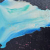 El contraste entre la fluidez de las corrientes y la fuerza del azul casi negro de fondo amplifica la sensación de inmensidad, reflejando tu estilo de explorar lo sensorial y lo intangible. Los colores, vibrantes y cuidadosamente elegidos, dialogan con el concepto de «Parajes Etéreos», en el que el agua se presenta no como un elemento tangible, sino como una fuerza emocional y transformadora. La obra se convierte en un homenaje a la conexión entre naturaleza, cosmos y emociones humanas.